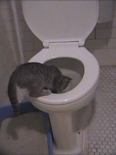 And what better way to end an exciting day, than to investigate what happens when Megan puts the litter clumps in the toilet and pulls the shiney silver handle!!