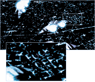 Ever wondered, why John Dykstra left Galactica? Well, rumor is, that he and Larson did not exactly get along, if you know what I mean....I don't know about how much of this is true, but if it's any indication, the picture below, taken as freeze frame out of the original movie (!) seems to support that bit of gossip. Let's just say, if you look closely you will discover a "special" special effect, a message to Larson that rhymes with "duck..." - the lights, look at the lights ..... |
