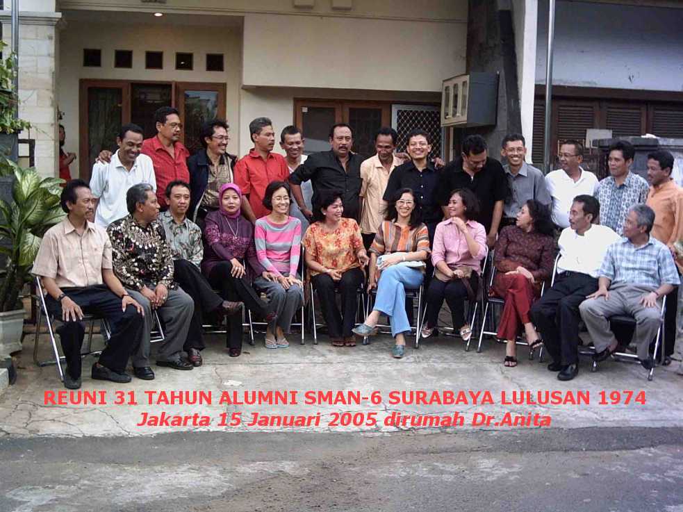 SELAMAT DATANG DI SITUS ALUMNI SMAN-6 SURABAYA.....OJO SUNGKAN2 ....AYO REK NGABUNG ...TAK ENTENI YO SAIKI WAE....BRAVO SMAN-6 SURABAYA !!!TERIMAKASIH atas SUKSESNYA REUNI 31 TAHUN PADA HARI SABTU 15 JANUARI 2005 dirumah Dr.ANITA di JAKARTA TIMUR..TERIMAKASIH BANYAK atas PARTISIPASI TEMAN-TEMAN SEMUANYA pada REUNI 31 TAHUN. .