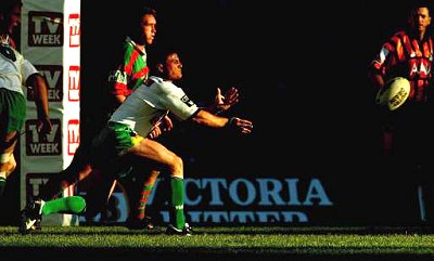 sight of the tryline, Rabbitohs captain Andrew Hart smashed trough some