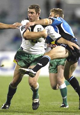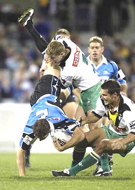 metre out from the Sharks line and Raider Brett Finch was there to make