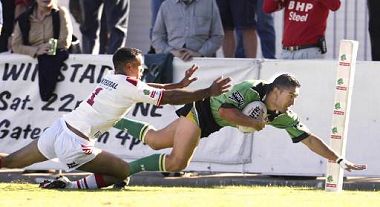 Raiders' backline for being inside five metres on the scrum and so awarded