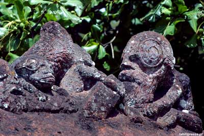 | SURVIVOR TRIBAL COUNCIL! This Year's tribal council is VERY different. The actual council is held inside a rectangular hut made of wood, dried brush, and lava rocks. The area is surrounded by stone walls, green vines, and mystical statues, including the symbolical tiki. In the background you can see the mountains of Nuku Haiva, waterfalls, and the lush forest. To see the location, visit SURVIVOR Maps. |