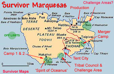 | "Tapu" areas (restricted areas) are where filming occurs on Nuku Haiva. Locations for production camps, tribal council, and both tribal camps have been discovered. |