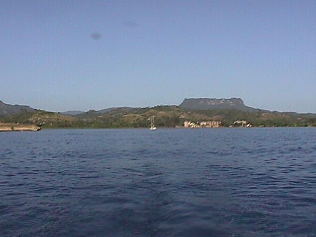 As we made our way along the coast, in addition to avoiding being boarded, we had very pretty scenery. The East end of Cuba is very mountainous and very pretty. As we passed creeks opening to the ocean, we looked up valleys that were awesome. Along the way, we passed several of the small Cuban fishing boats bobbing around out in the ocean. We had to wonder what happened when one was caught out there when a storm came up.