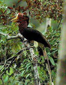 นกชนหิน (Helmeted Hornbill, Rhinoplax vigil)เป็นนกเงือกชนิดเดียวที่โหนกตันเหมือนงาช้าง มีสีแดงเข้ม จงอยปากตรงสั้น และเป็นนกเงือชนิดเดียว ที่มีขนหางยาวเป็นกรวยอยู่ 1 คู่ นกชนหินตัวผู้มีคอซึ่งเป็นหนังเปลือยย่นสีแดงเข้ม ส่วนคอตัวเมีมีสีฟ้าซีด ๆ พบนกเงือก ชนิดนี้ได้ทางภาคใต้ เช่น อุทยานแห่งชาติศรีพังงา |