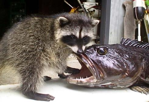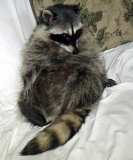 "I had to sneak in "Dad's" office and borrow his computer to send you this update. My brother and sister, Pistol and Pandemonium are doing fine in the wild and come to visit me in the house every night. My sister Panda got run over by a car and I got my rear foot broken in the same accident. It took me two days to crawl home, so "Dad" is letting me stay in the house until i heal up. My foot is a little crooked but i am back to running and climbing again. I feel safer sleeping in my house in the kitchen cabinet during the day and playing with the outside coonies at night. I have 26 friends to choose from. Hope "Dad" got the translation right. Non pet Cubby"  |