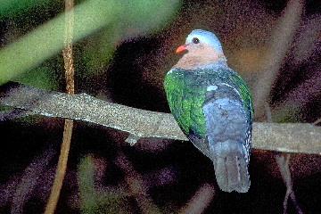 India to Indo-China and the Sundas, extending to Australia and W. Pacific. Common resident but locally migratory, in primary and old secondary forests to 4000 feet. Size 23 cm. A quiet and shy ground feeding dove, usually seen singly or in pairs, at the edges of clearings or flying fast and low through the forest. |