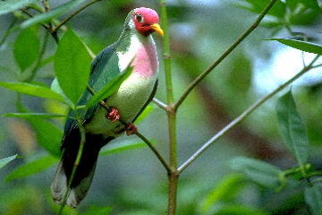 Size 26 cm. Seen singly or in pairs feeding on the ground in dense jungle.