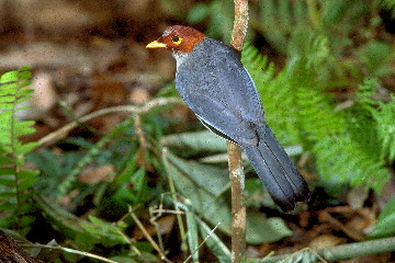 Found in Malaya, Sumatra and Borneo. Common sub-montane resident in kerangas and mossy forests, or on the edges of clearings to 9000 feet, ranging down to 700 feet at the foot of mountains. Size 23 cm. In pairs or small groups, often with bird waves, foraging from forty feet downwards in dense vegetation. |