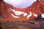 Campsite near the base of the Suicide Peaks, at Rabbit Lake, Chugach State Park, Anchorage