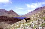 Meghan on approach to North Suicide Peak, Rabbit Lake in the background