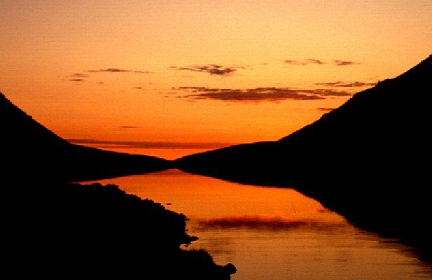 Sunset at Rabbit Lake, looking back down the valley (away from the Suicide Peaks)