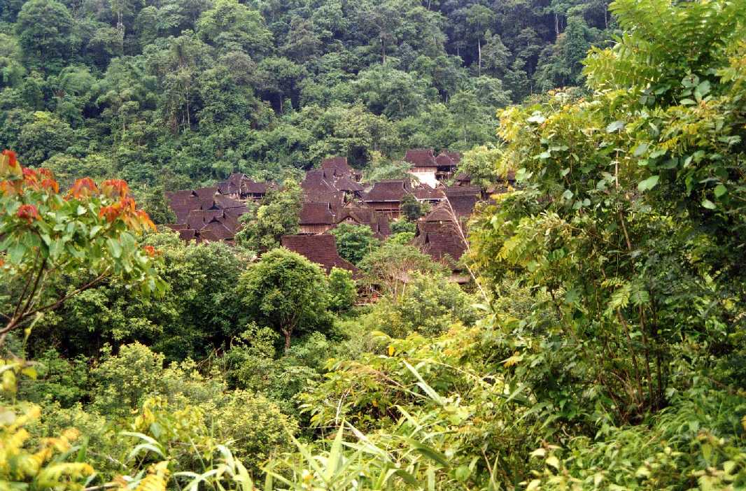 | This is a typical Yunnan province mountain village. As you see, the houses are litteraly in the middle of the forest. It's hard to see how people get in and out of the village. It's mostly by foot, bicycle or some kind of moped. The roads are dirt, and in the rainy season you see landslides all over the place. |
