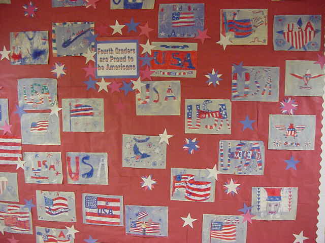 | If this doesn't make you proud to be an American, then hang up your hat! I was blown away by this wall covered with patriotic artwork at Austin Elementary. These fourth graders really poured their artistic talent and their hearts into these outstanding works! For those of you who aren't honored with the opportunity to work with kids, this is why we do it. |
