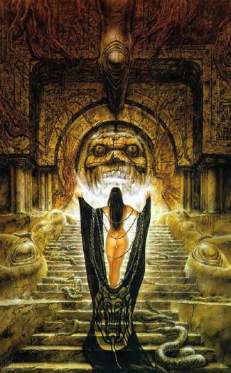 | ::deep within the bowels of the darken cavern she moved, ebon wrap flowing freely from skin the soft color of cream, so silky in it's appearance it did little to conceal her nude form below, and yet she did nothing to hide that supple body from the eyes of her companion. The darkness only seemed to enhance her ethreal looks more, causing those dark umber locks to deepen to nearly black, those blue-violet orbs gaze longingly towards the male with her. Dark crimson paint taints her lips as they pull into a pure demonic smile towards her lord and master. Serpent face, turns towards the woman who now entered his domain, a pure lustful smile on his face watching as she moved towards him, beckonging her closer towards his scaled body laid bare for her:: Izlade..come here my lover ::his voice a soft hiss, the woman complies willingly, the gaudy silk draps over her shoulder to reveal the serpant's face designed perfectly to her flawless skin, Xusia knew she would not fight him. Izlade finally approached her lover and god, drapping on delicately shaped arm upon the scaly shoulder, tilting her neck to the side offering him her neck for him to feast upon her, and thusly injecting her with his venom, just hanging her form upon his:: My lord Xusia.. I shall forever be your faithful follower...::smiling dreamily as the man lowered his mouth closer to the morsel of her neck exposed, sinking those fangs deep and long into one particular vein within her neck. The venom bedded within those pearly whites injected a burning, deadly poison into her body without intending on killing her. Slow points of something white exposes themself from her tiers, his venom only caused two of her teeth to grow into viper's fangs. Once his venom began to take hold of her body, she slumps against his slender body only for him to catch her with ease, carrying her tenderly towards the bed that they shared when she summoned him to this plane. Gently lowering that curveous body to the rich piles of silk, smoothing out those rich straightness of her dark brown hair:: I know Izlade, you now carry my venom.. use it wisely my beauty ::only to have him dispate back into that large black cobra, curling around her body to sleep:: |