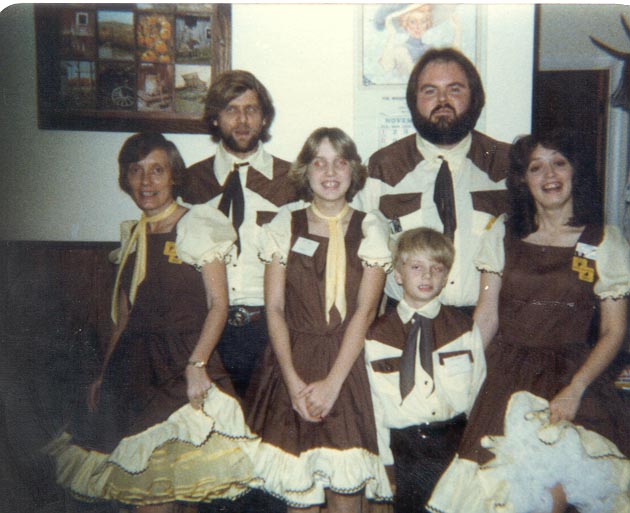 | This is another picture of alll six of us like the one above. Sue made all the outfits and we belonged to a club called the { Happy Squares } the club no longer existes. | ![]() |