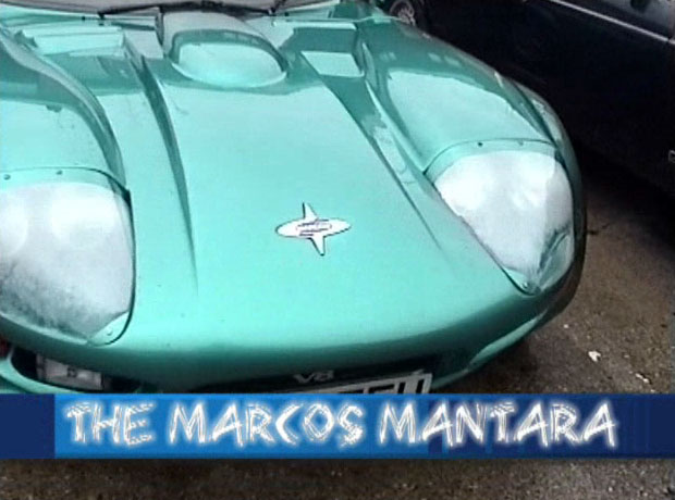 I had to shoot a video for the guys that I work with, they wanted to hear the sound of that rumbling V8 engine and to see what exactly a Marcos Mantara was, most of them had not heard of it. The images below are taken from that video footage. Unfortunately I can't upload the movie, its nearly 30Mb and Geocities has a limit of 1Mb for any file on a free site so these stills will have to do for now.