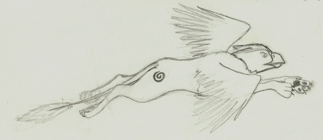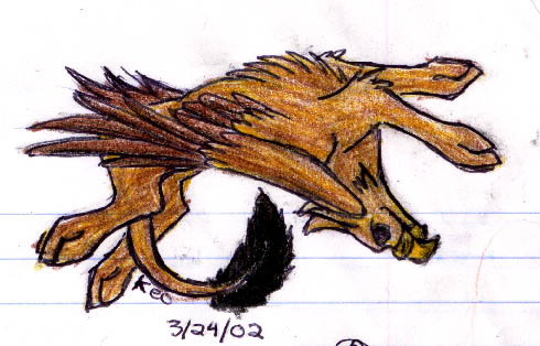 - Dunno why, but I was thinking 'Hippogryph' all the time I was drawing it. It's incredibly more detailed in real life, the scanner mauled it. :-( I'll try to re-scan when possible.