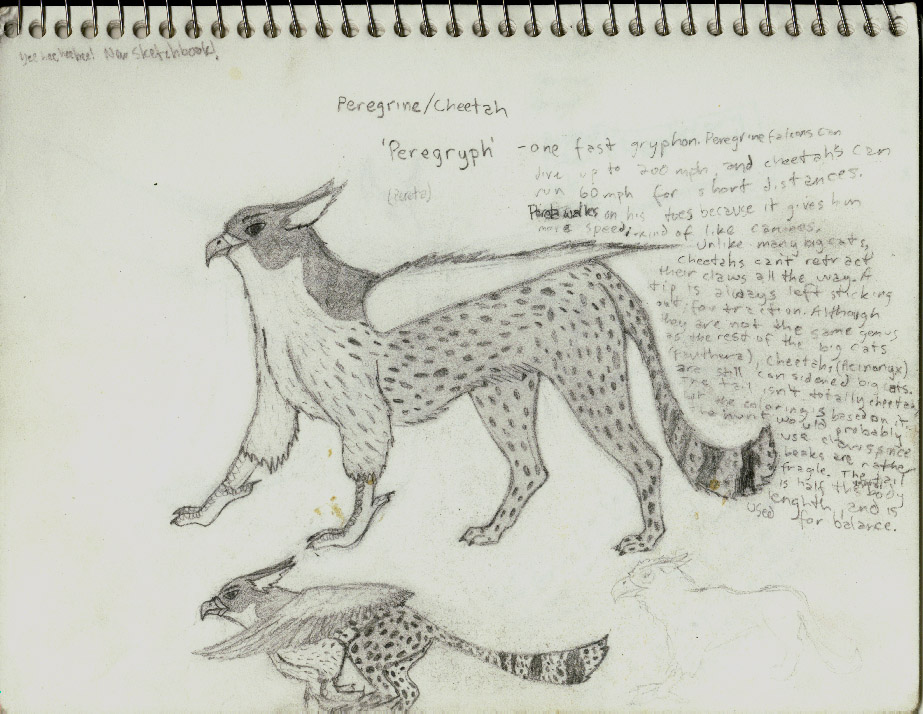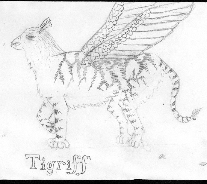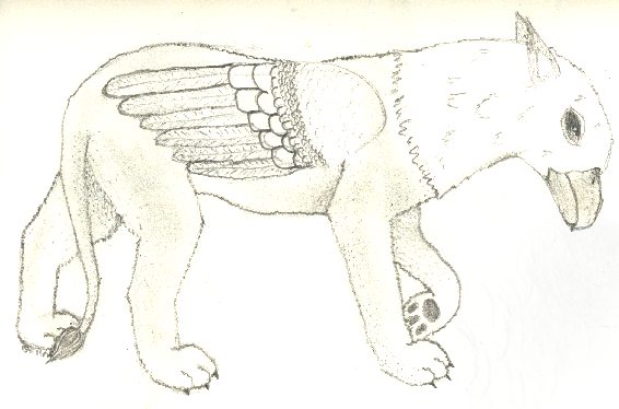 - Well, I dug out the ole' sketchbooks, and look what I found! *winces* Yes, my first ever gryphon! I don't know how people have patience to draw good tigerstripes!