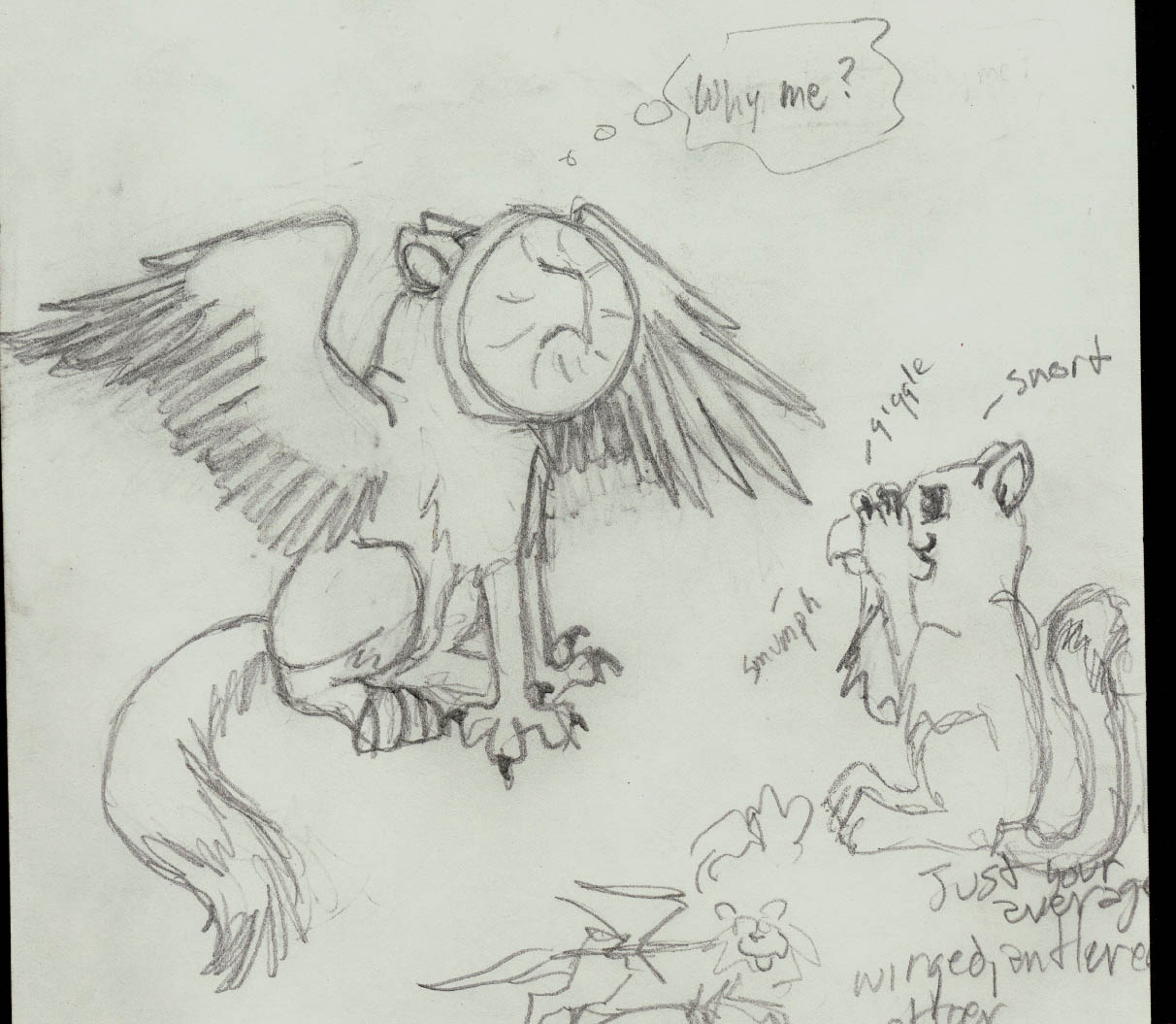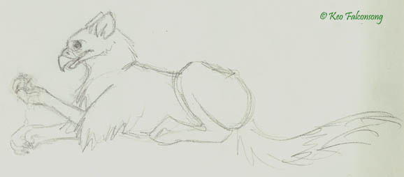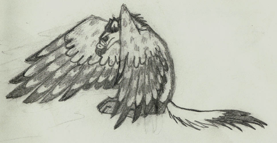 - Yah, just a random gryphie trottin' along, enjoyin' 'imself.... Thanks ever to Razi, the gryph expert-- for teaching moi howtodraw folded gryphonwings!