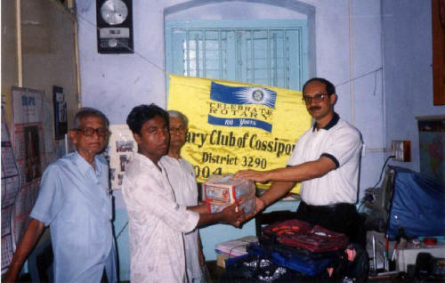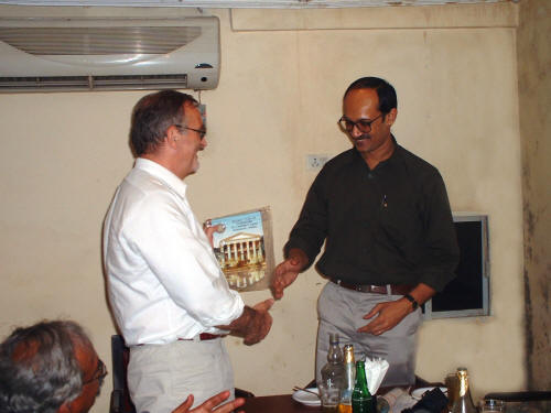 Exchanging Flags with Dr P. Mossman of R.C.Barcelona, Spain |