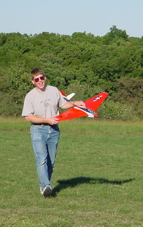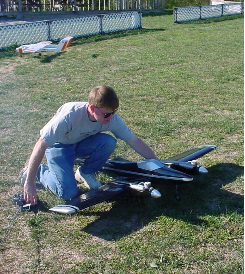 Here he is, RCMB's top speed demon. If it doesn't go fast, Jim Parks doesn't own one! Extreme lower photo shows Jim with about the fastest model you will see at the field.