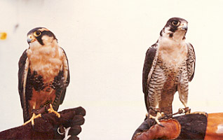 | APLOMADO & PEREGRINE FALCONS (falco rufigularis) & (falco peregrinus tundrius ) Eyass Female & Adult Tiercel Photo By: Harry McElroy |