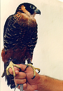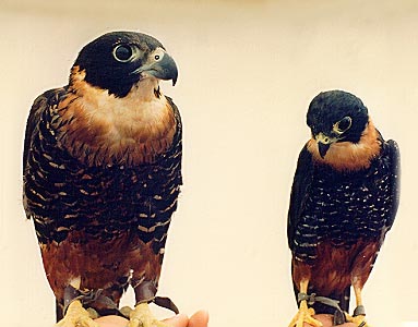 FEMALE ORANGE BREASTED FALCON & TIERCEL BAT FALCON (falco deiroleucus & falco rufigularis) Adults Photo by: Harry McElroy |