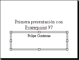 Si pulsas click en los dos recuadros observarás que se seleccionan individualmente. Estos recuadros representan objetos de Powerpoint. Un objeto puede ser tanto un gráfico como un texto y pueden ser tratados individualmente. Podemos seleccionarlos, moverlos situando el puntero del Mouse sobre un borde y arrastrando, borrarlos, modificarlos, etc.