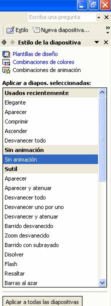 Efectos de Animación a la diapositiva