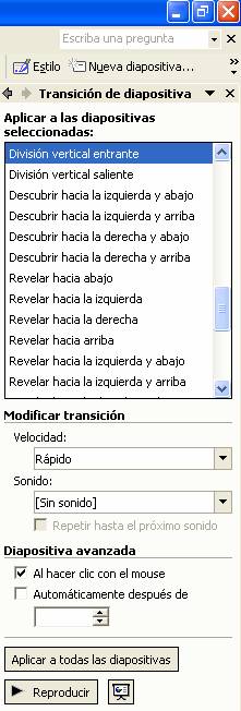 Si deseas aplicar el mismo efecto a todas las diapositivas: