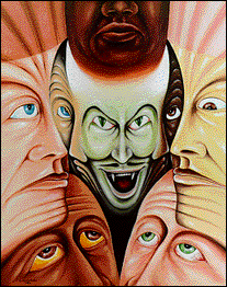 Every person is physically a part of the fabric called humanity, which is --unilaterally-- bedizened with all kinds of nobel epithets and arbitrary virtues. On the contrary, the pervading spirit is, and always was, a miasma of distrust and suspicion, periodically accentuated by hate and outright mayhem and murder. Despite effusive lip service to sublime ideals, humanity's awe is lavished on its real god, Satan, whose suzerainty and leering confidence are sustained by his loyal subjects throughout the world --in Bosnia, Somalia, Ireland, India, the Middle East, Haiti, Cuba, Tibet, South Africa -- and Waco. |