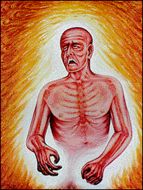 | Fever This is one of an original series of paintings (now lost) concerning various medical signs and symptoms. It depicts the great discomfort of intense bodily heat. The inferno is internal; and in some tragic cases even the will to live is charred. |