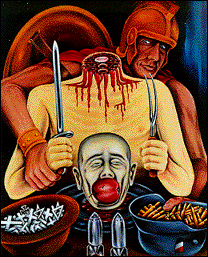 What is war? Is it a soldier dying, or guns, or bombs, or crosses, or weeping mothers, or sport, or patriotism, or valor, or high paying jobs? What is war? Not hell. For that is merely evil. War is worse than evil. It is mind-boggling suicide --mass suicide-- with humankind devouring or trying to devour itself. In vain attemps to assuage some sort of weird, innate (and apparently insatiable) appetite nurtured by our true and beloved God, Mars, we will not settle for less than the "flower of evolution" as the main course, embellished by bountiful side dishes and fanciful shakers filled with the "fruits" of our marvelous hands and big starving brains. How long will we persist in this lethal nonsense? How long before we really believe that salvation lies not in an insane paradox fostered by brute and selfish gluttony, but in the far more "nutritious" and healthful viand in the sadly neglected garden of human compassion and understanding? Considering the status of brotherhood today, possibly too long. |