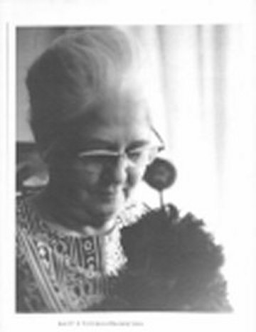 | Mattie Palmer Reed, close up, about 1970 Photo shot in living room of Stanton home. She's holding poodle Pierre, a long lived pet. |