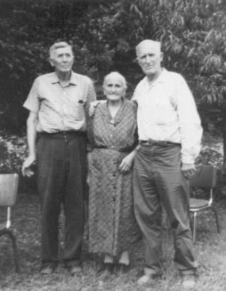 | George, Mollie, & Abraham Crabtree Photo abt 1950. Crabtrees are long lived. George lived 101 yrs, Mollie 94, Abe 96. Their father, George Acon, lived 96 yrs. |