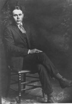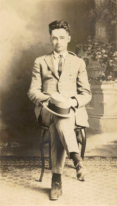 | George W Reed, (1896-1954), abt. 1920 Geo. W always dressed well, usually with coat and tie, unless he was actually doing manual labor. He claimed that the "W" in his name was just that: An initial, nothing more. |
