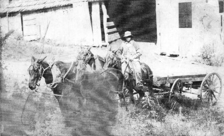 | George Reed in the Oil Fields abt. 1917 George worked in the Oil Fields of Estill & Lee Counties of Ky. just prior to WW I. He started as a Roustabout and worked up to Tool Dresser. It is obvious he also worked as a Teamster whatever the job title. |