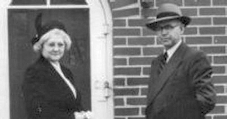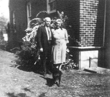 | George & Mattie Palmer Reed, late 1940's Photo taken at NW corner of Stanton home. Morton & Mable Crowe lived next door from ~1936-52. Gilbert & Martha Dalton bought the Crowe home and spent their lives there. |