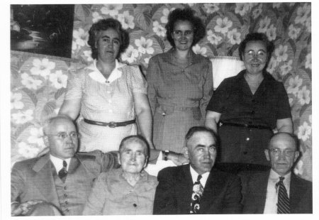 | George Reed, mother Mollie, brothers & sisters Standing L-R, sisters Emma Kinser, Iva Morton, Maud Miller; sitting, George, Mollie Crabtree Reed, brothers William Samuel and Floyd Herman Reed. Another brrother, Sherman Douglas Reed, passed away in 1943. Picture about 1950. |