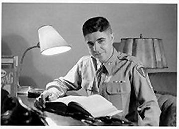 | 1st Lt. Montford L Reed, Signal Corps, US Army Europe. Photo taken earky 1955. Reeds had a 3rd floor apartment at 107-C Ziethenstrasse, Manheim/Feudenheim, W Germany. The apt. was quite comfortable and well equipped. Higher ranks were on lower floors. |