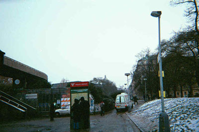 Outside the train/metro station Hlavi Nedrazi (red sign is metro station and map sign) |