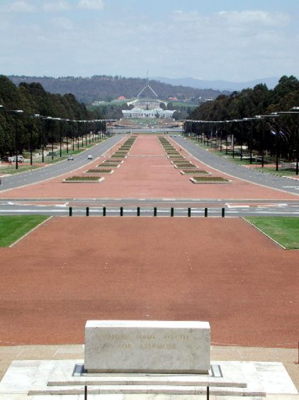 Looking down the ANZAC Parade towards the Old and New Parliament Houses from the War Museum. ANZAC is the acronym for Australian and New Zealand Army Corp.