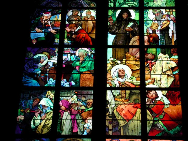 In my opinion, this is the most beautiful stained glass window in St. Vitus Cathedral. I have been to a few churches and cathedrals in Sydney, but this is the first time for me to see such a beauitful display of stained glass.