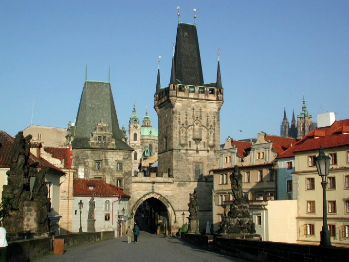 The Little Quarter end of Charles Bridge. Behind the Little Quarter Bridge Tower you can see St. Vitus Cathedral on the right and the dome of the Church of St. Nicholas behind the tower. In my opionion, the best time to take photos of Prague is early in the morning before the popular tourist sites are swamped with hordes of tourists. The photo below was taken at around 7:30am. If you come to this spot again at 10am, it will be full of tourists plus little stalls selling souvenirs to tourists.