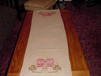 Gallery Item 1004 Arts & Crafts Embroidered Runner Stylized organic forms and fringe edge this Arts & Crafts Runner. Linen is strong, sturdy with good condition of embroidery and fabric. Linen with minor spots, 6, where linen is lightened due to age. Measures 15"x57" inches.
