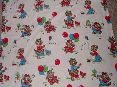 Item 1009 Vintage Cotton Novelty Print Fun Kitty Kats flying Kites and Baloons with the idea of just plain fun and amusingment on this 1940's cotton print. Excellent Condition. Cats Measure 4" x 2 1/2" each, 1 yard of Fabric, 34" wide. SOLD - $13.50 Customer Satisfaction: "A true pleasure to work with...many thanks! A+"