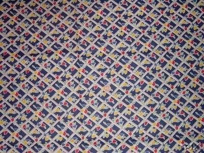 Item 1011 Vintage Deco Small Print Quilt Fabric Deco inspired cotton print in primary blue, red and yellow. Grid with geometric flowers adorn this cotton. Excellent Condition, 1 yard of Fabric, 36" wide. SOLD - $9.99 Customer Satisfaction: "Excellent seller! I highly recommend. Fast shipping!"