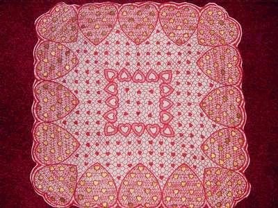 Item 1019 Vintage Valentines Hanky Scalloped Edge Hanky covered with Hearts. Small Hearts in outer edge are Metalic Gold hue. Warm someones heart with this Hanky. Size: 15" X 15". Mint condition. $12.00 Inquire, Reserve or Purchase Visa, MasterCard and PayPal Accepted.